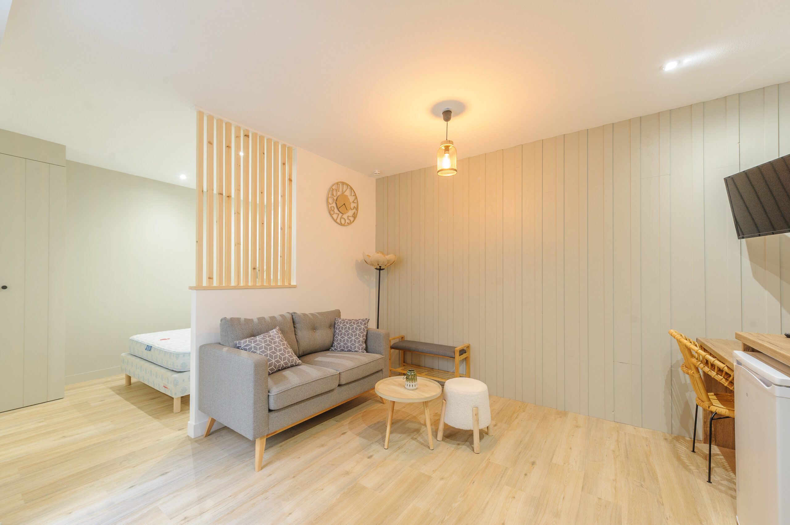 Les studios, auparavant vieillissants, ont fait l’objet d’un travail minutieux sur l’agencement et la fonctionnalité. L’objectif : optimiser chaque mètre carré tout en conservant l’esprit des lieux. Les tons doux, les matériaux naturels et les choix décoratifs soignés apportent désormais une atmosphère chaleureuse et apaisante, fidèle à l’identité rochelaise.